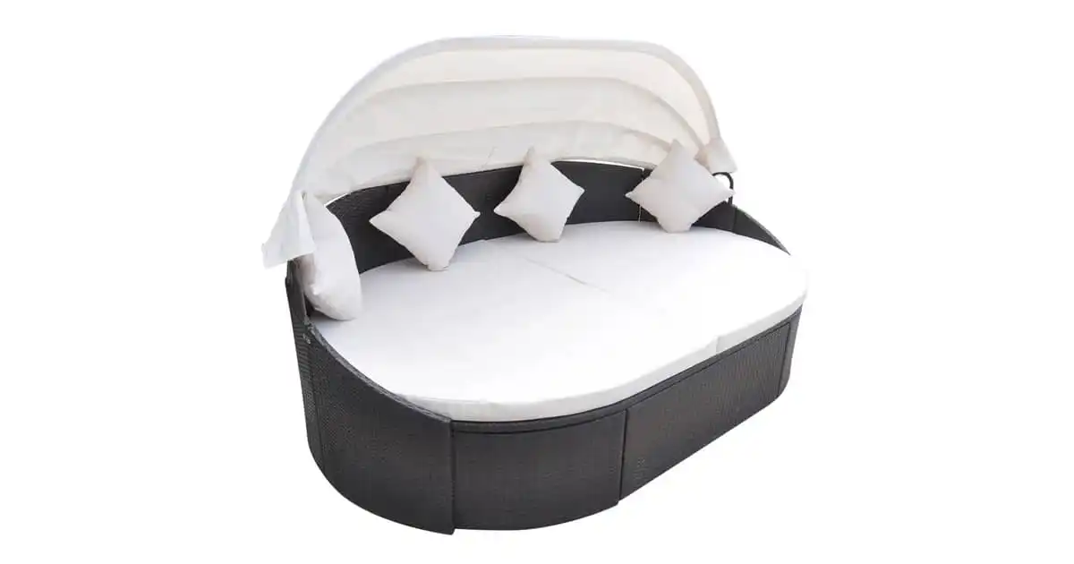 Vidaxl Outdoor Lounge Bed With Canopy Poly Rattan Black
