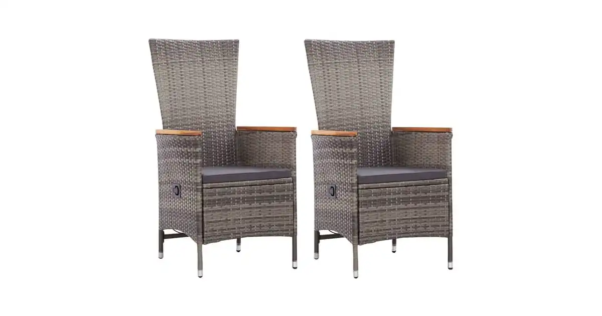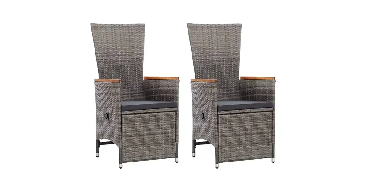 vidaXL Reclining Garden Chairs 2 pcs with Cushions Poly Rattan Grey