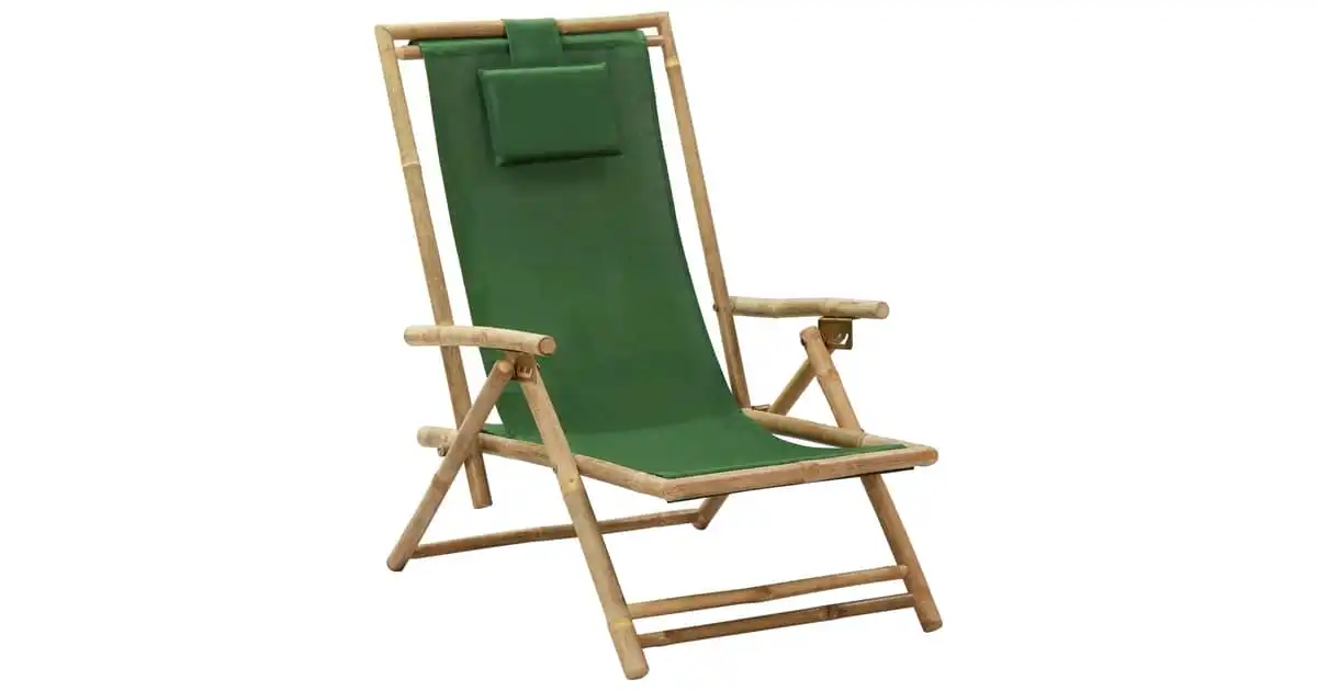 vidaXL Reclining Relaxing Chair Green Bamboo and Fabric