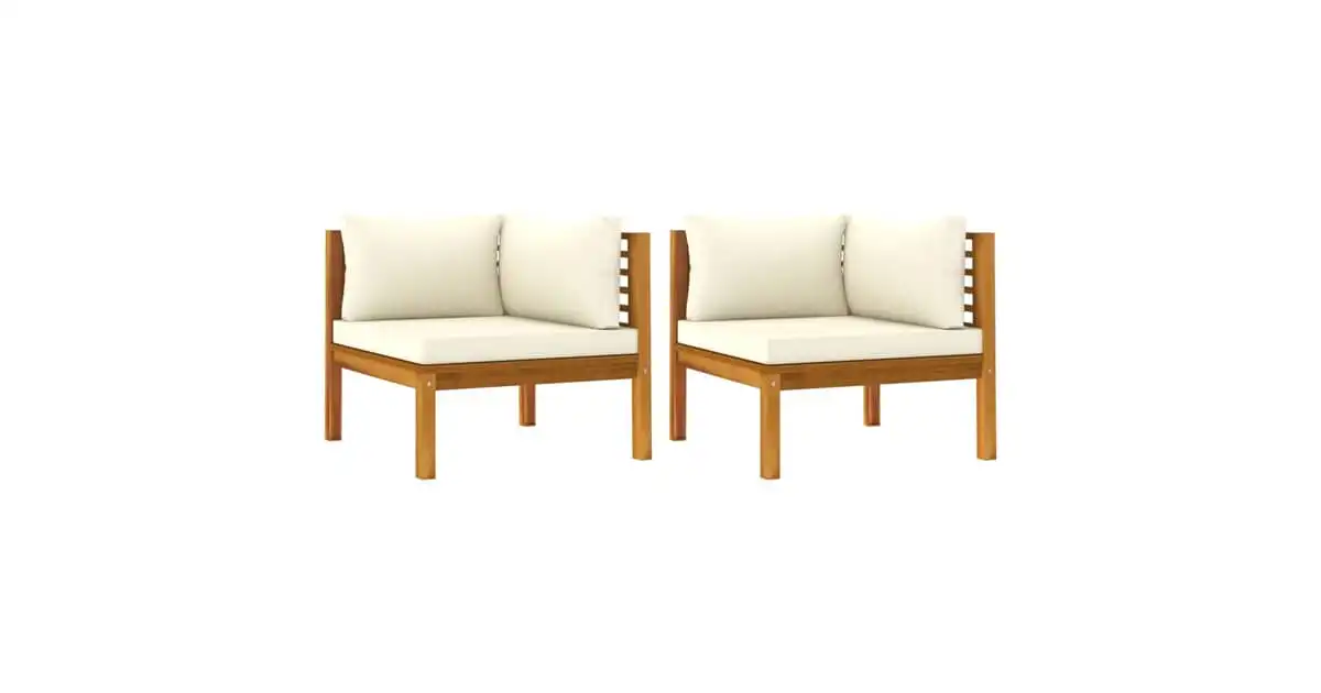 Vidaxl Corner Sofas 2 Pcs With Cream White Cushions Solid Acacia Wood