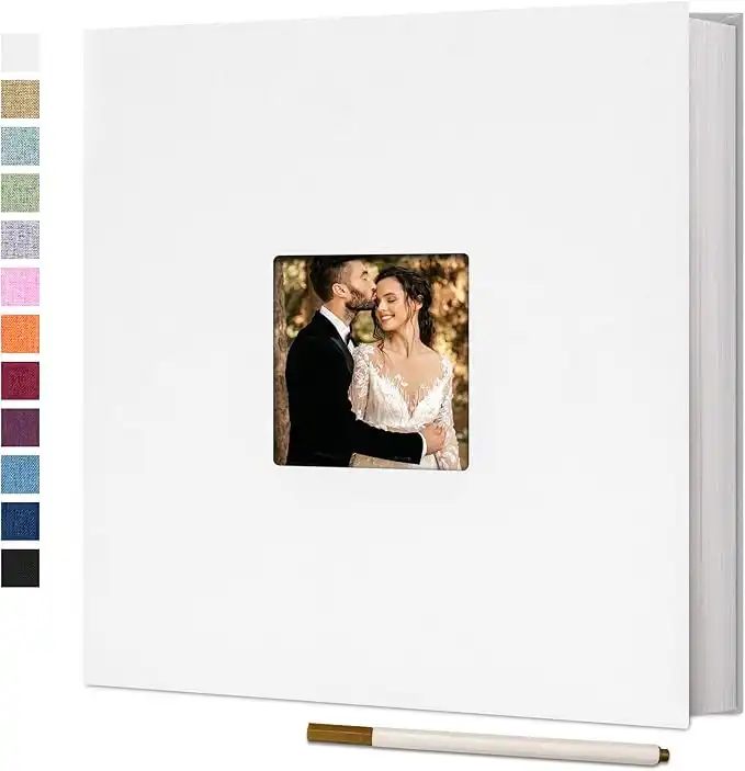 Vienrose Large Adhesive Photo Album Scrapbooking 40 Pages Linen Bound Photo Book DIY Length 33 x Width 32 cm with Metallic Pen