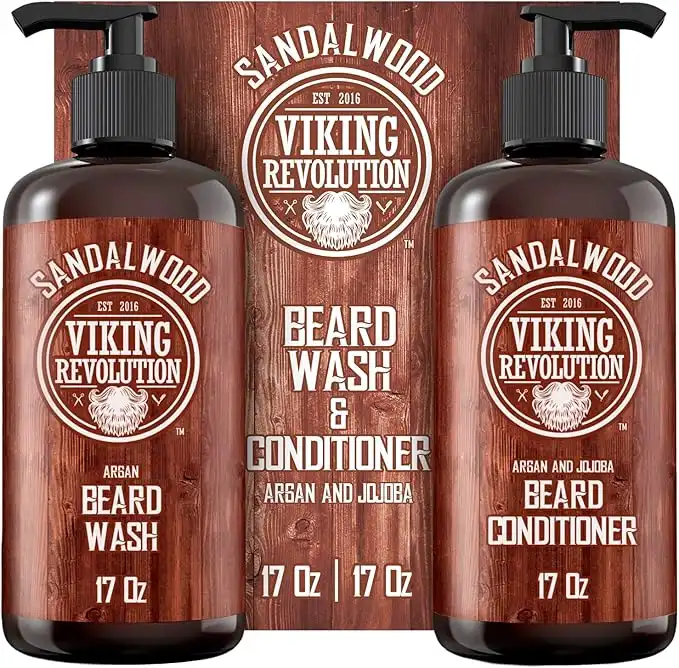 Viking Revolution Beard Wash & Beard Conditioner Set w/Argan & Jojoba Oils - Softens & Strengthens - Natural Sandalwood Scent - Beard Shampoo w/Beard Oil (500ml) — Price History & Tracker | DeserTracker