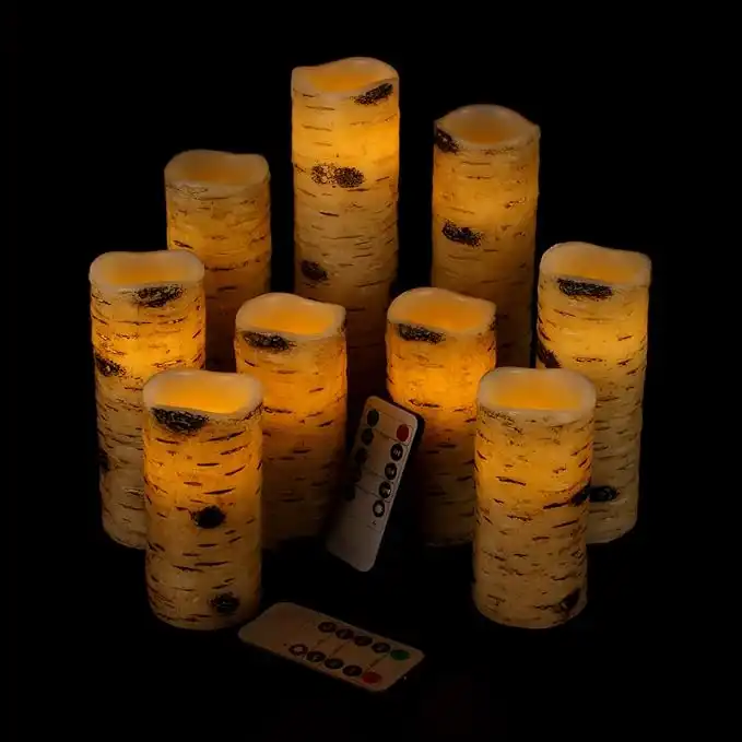 amazon.aeVinkor Flameless Candles Battery Operated Candles Birch Effect 4" 5" 6" 7" 8" 9" Set of 9 Real Wax Pillar LED Candles with 10-Key Remote Control 2/4/6/8 Hours Timer