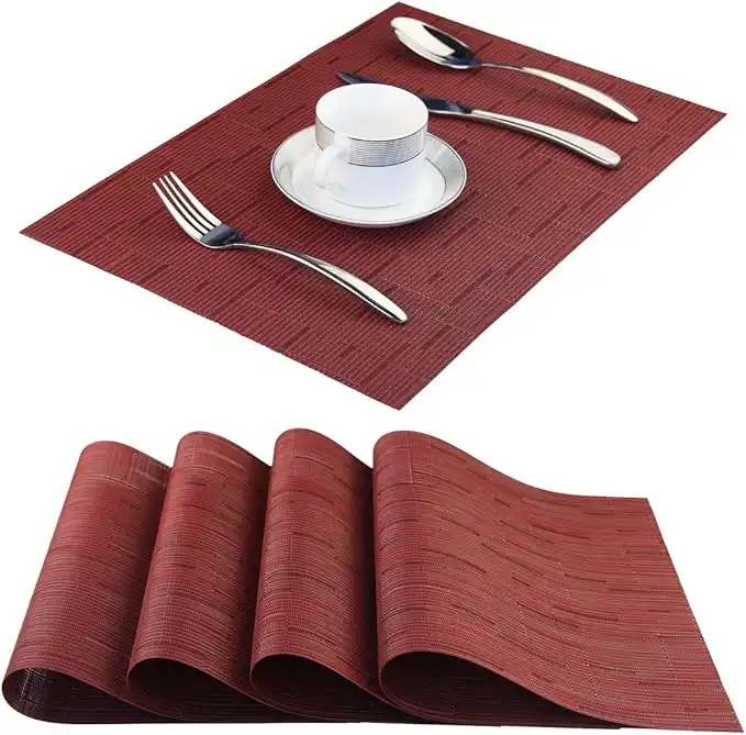 Vinyl Placemats,Washable Table Mats Easy to Clean Woven Placemats for Dining Table Set of 4 (Burgundy Red) — Price History & Tracker | DeserTracker