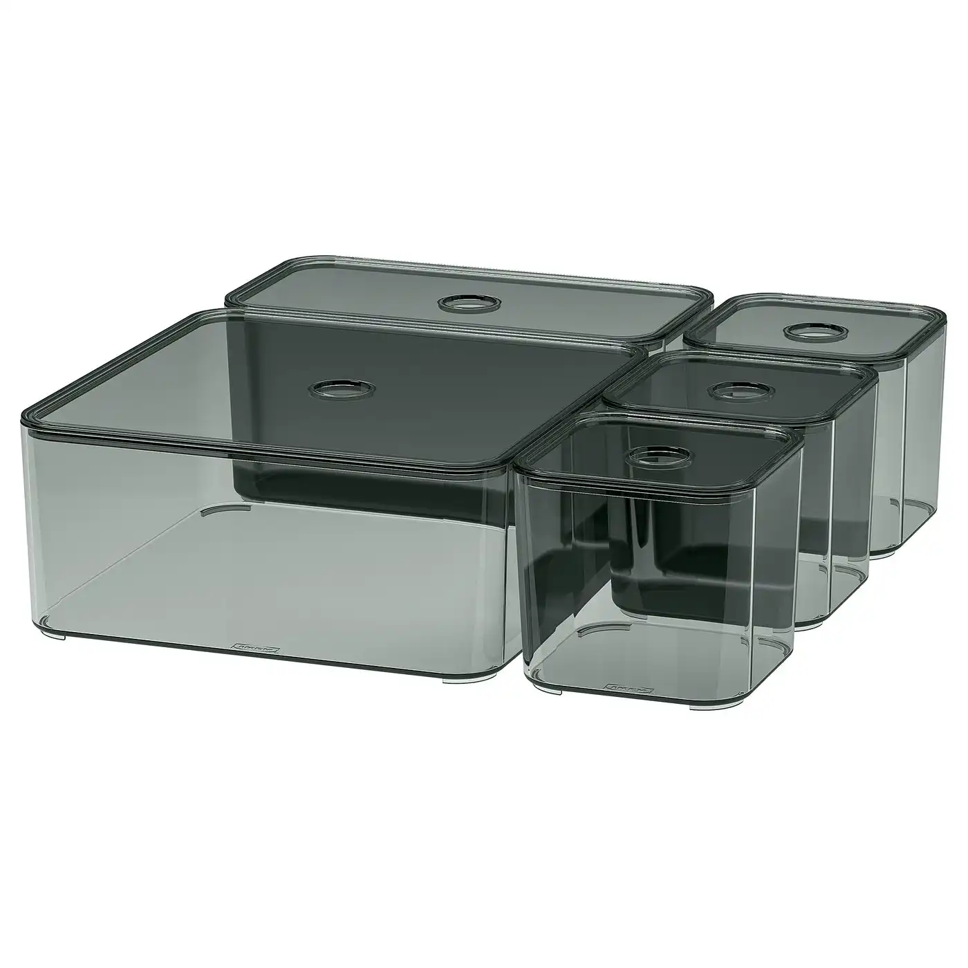 VISSLAÅN box with lid, set of 5, grey - IKEA