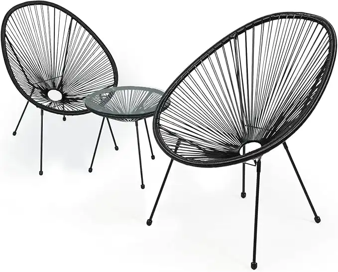 Vital 3-Piece Outdoor Seating Set with Acapulco Chairs, Modern Patio Furniture, Includes 2 Metal Steel Chairs and Glass Top Table for Garden, Poolside, or Balcony Use.