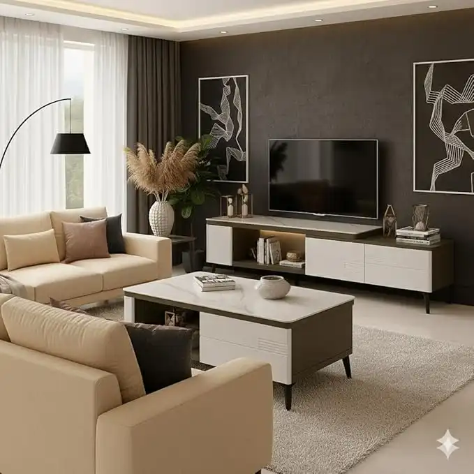 amazon.comVital Luxury Coffee Table & TV Console Set with Marble Finish | Sturdy Tapered Legs & Smart Storage | Elegant Living Room Furniture – Durable, Stylish & Easy to Clean