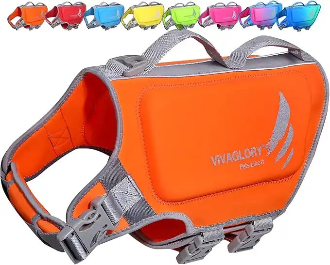 VIVAGLORY Lightweight Dog Life Jacket, Pet Life Preserver Life Vest Skin-Friendly Neoprene for Large Dogs with D-Ring and Quick Release Buckle, Orange — Price History & Tracker | DeserTracker