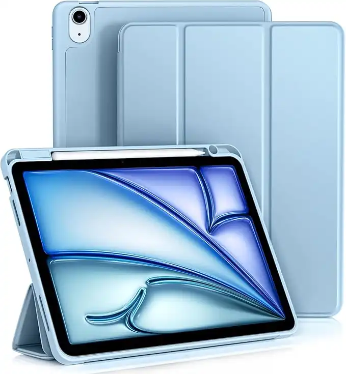 amazon.aeVobafe Case for iPad Air 11 Inch Case 2024 / Air 6th 5th 4th Generation 2022/2020 10.9 Inch, Flexible TPU Back Cover with Pencil Holder, [Support Apple Pencil Charging][Auto Wake/Sleep]-Light Blue
