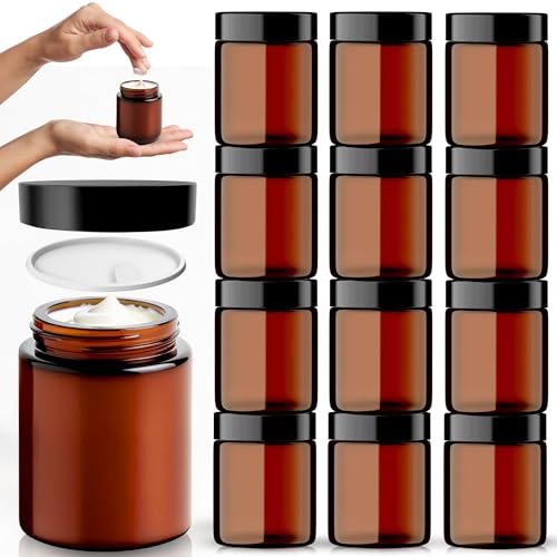 volila Brown Glass Cosmetic Tinted Jars (12 Pack) With Screw On Lids And White Liners For Creams, Lotions and Essential Oils - 4oz / 120ml Tubs — Price History & Tracker | DeserTracker