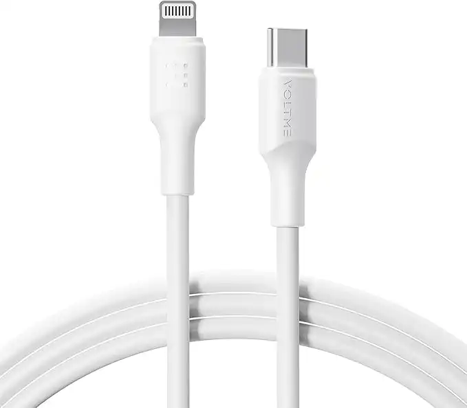 Voltme Powerlink EDC USB C to Lightning Cable 30W 3A (2.0m/6.6ft) | PD Fast Charge Liquid Silicone Cord | Soft Tangle-Free E-Marker Data Cable for iPhone 14/13, iPad - White (C2293)