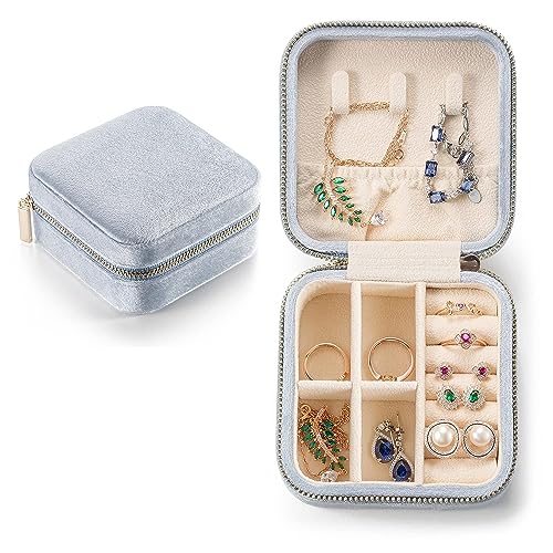 amazon.aeVOMNA Mini Velvet Jewelry Case, Travel Jewelry Box, Small Jewelry Organizer Portable Display Jewelry Storage Case for Rings Earrings Necklace Bracelet Bangle,Gifts for Girls Women (Light Blue)