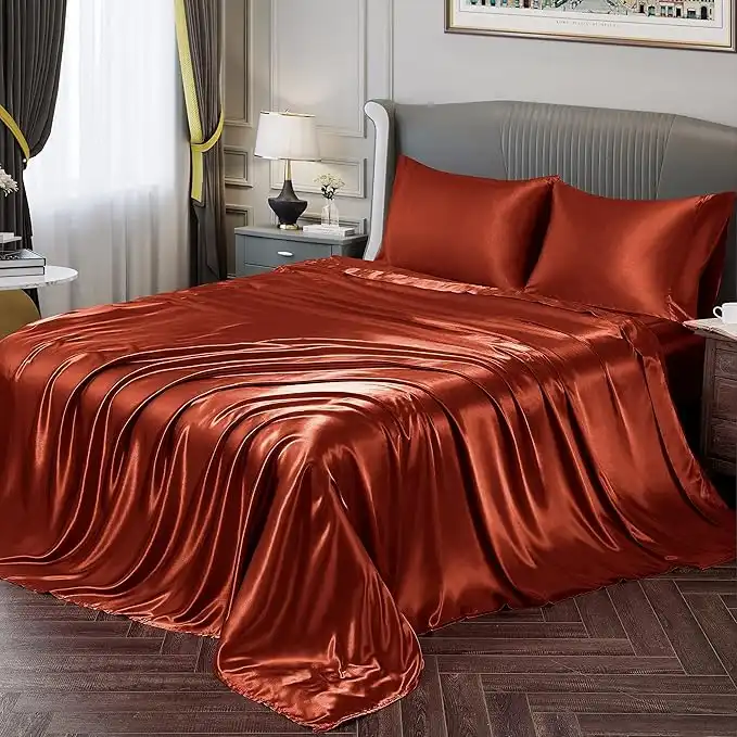 amazon.aeVonty Satin Sheets King Silky Soft Satin Bed Sheets Rust Orange Sheet Set, 1 Deep Pocket Fitted Sheet + 1 Flat Sheet + 2 Pillowcases