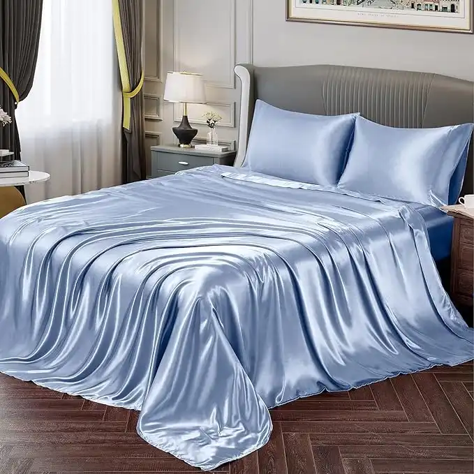 amazon.aeVonty Satin Sheets King Size Silky Soft Satin Bed Sheets Baby Blue Satin Sheet Set, 1 Deep Pocket Fitted Sheet + 1 Flat Sheet + 2 Pillowcases