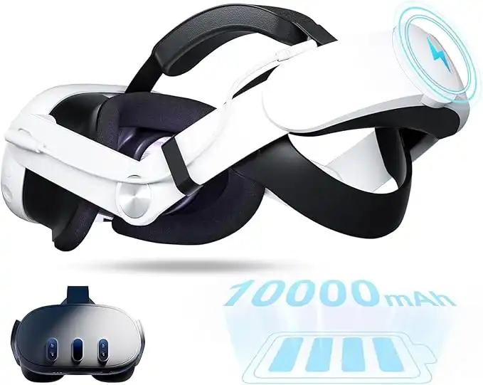 amazon.aeVR Battery Headset for Oculus/Meta Quest 3/3S Head Strap with 10000mAh Battery Pack, Rechargeable Elite Strap Extend 8H Playtime and Adjustable (Meta Quest 3/3S)