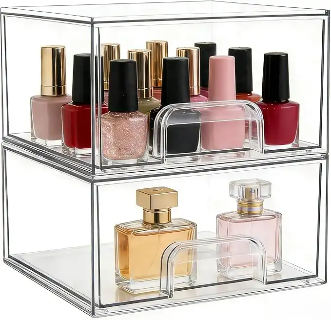 amazon.aeVtopmart 2 Pack Small Clear Stackable Storage Drawers,Acrylic Bathroom Makeup Organizer,Plastic Storage Bins For Vanity, Undersink, Kitchen Cabinets, Pantry, Home Organization