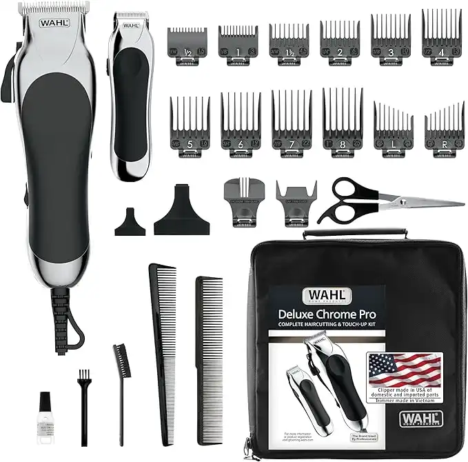 Wahl Cordless Deluxe Chrome Pro, Complete Hair and Beard Clipping and Trimming Kit, Includes Clipper with Guide for A Cut Every Time, 79524-5201
