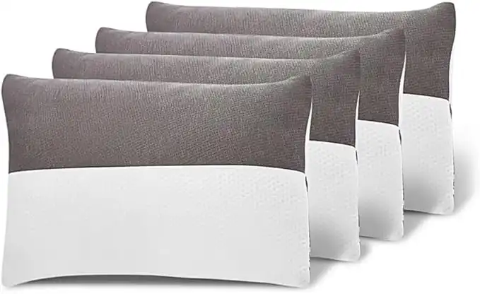 Wakefit Height Adjustable Hollow Fiber Sleeping Pillow with Zip |(White and Grey Standard, Set of 4, Microfiber) 3 Months Warranty