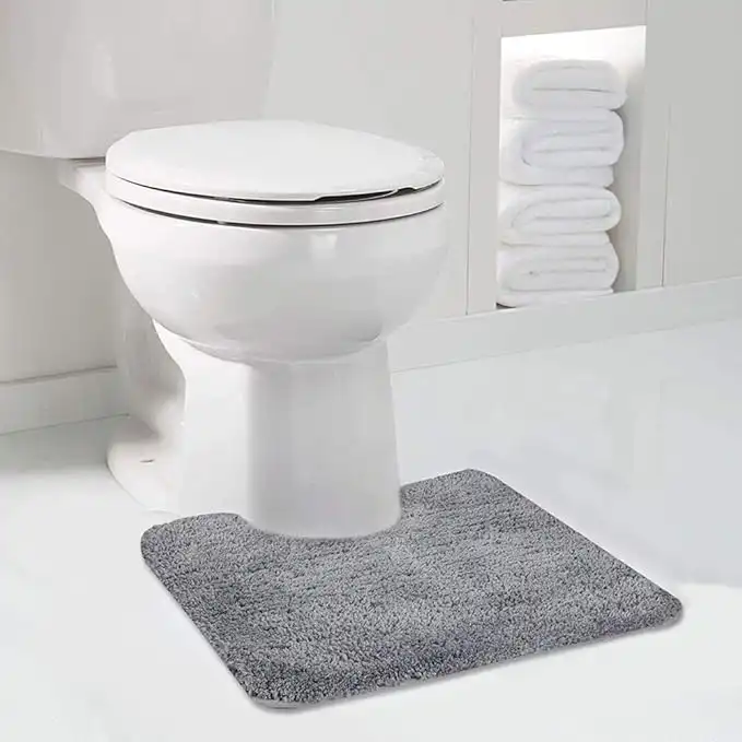 amazon.aeWalensee Bathroom Contour Rug (20x24, Grey) Non Slip Bath Mat for Water Absorbent Soft Microfiber Shaggy Machine Washable U Shape For Toilet