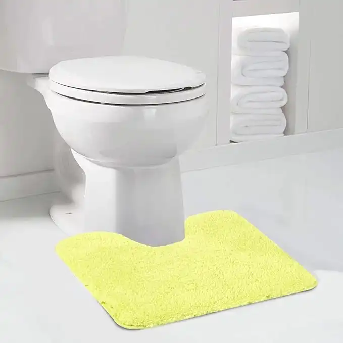 Walensee Bathroom Contour Rug (20x24, Yellow) Non Slip Bath Mat Water Absorbent Soft Microfiber Shaggy Bathroom Mat Machine Washable Bath Rug U Shape Toilet Rug