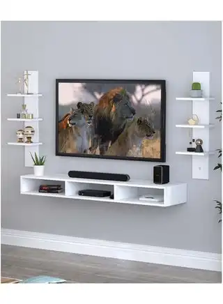 Wall Mounted TV Unit with Storage Cabinet & Floating Shelf – White Design — Price History & Tracker | DeserTracker