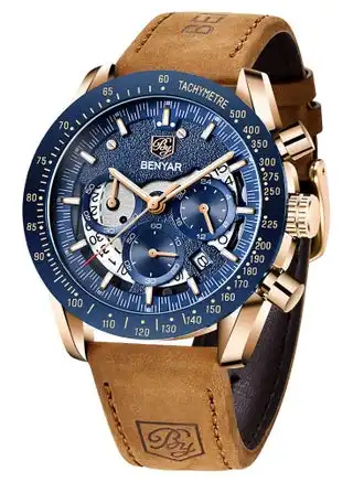Watches for Men Luxury Quartz Water Resistant Watch Men's Chronograph Genuine Leather Strap 5120