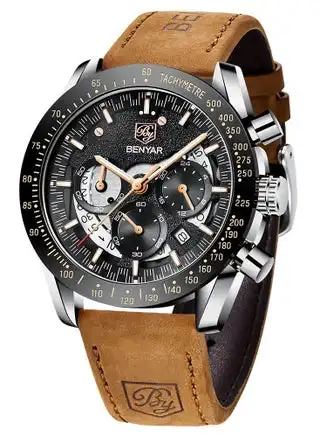 Watches for Men Luxury Quartz Water Resistant Watch Men's Chronograph Genuine Leather Strap 5120 Brown