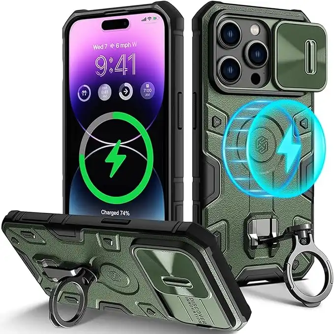 Wefor Case for iPhone 14 Pro Max Case with Stand, Slide Camera Cover, Military Grade Shockproof Portective Case Compatible with MagSafe Wireless Charger&Magnetic Car Mount Holder (Green)
