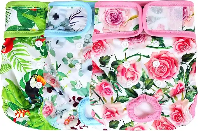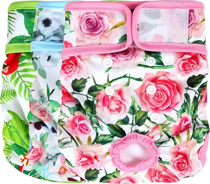 amazon.aewegreeco Luxury Washable Reusable Dog Diapers (Stylish Pattern) - Durable Female Dog Diapers, Doggie Diapers, 3 Pack (Floral, Medium)