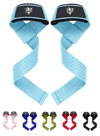 Weight Lifting Straps, Gym Straps for Weight Lifting Support, Powerlifting, Bodybuilding & Fitness, Adjustable Wrist Straps for Men & Women - Strength Training Gym Accessories (Light Blue)