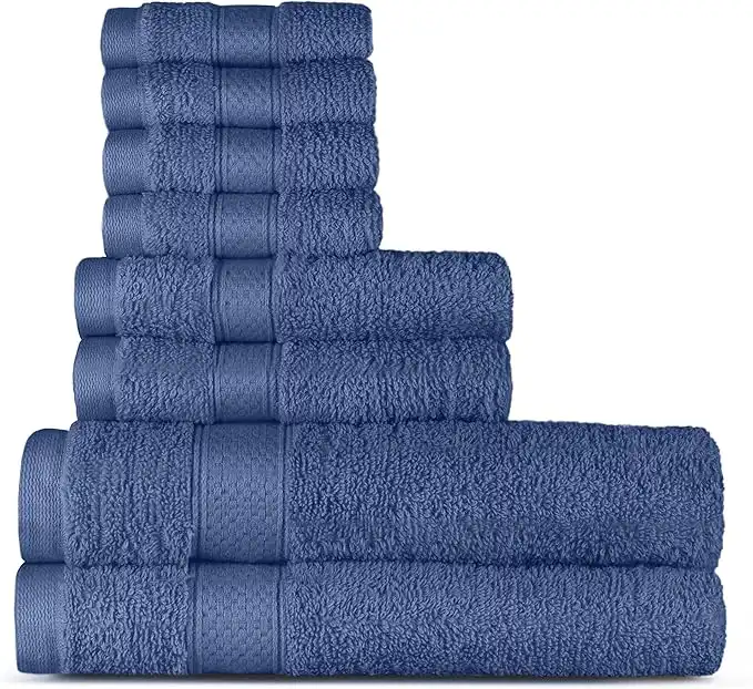 Welhome 100% Cotton Towel (Cobalt)- Set of 8 - Quick Dry - Absorbent - Soft - Ideal for Daily Use - 434 GSM - Machine Washable - 2 Bath - 2 Hand - 4 Wash Towels — Price History & Tracker | DeserTracker