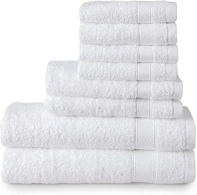 Welhome 100% Cotton Towel (White)- Set of 8 - Quick Dry - Absorbent - Soft - Ideal for Daily Use - 434 GSM - Machine Washable - 2 Bath - 2 Hand - 4 Wash Towels