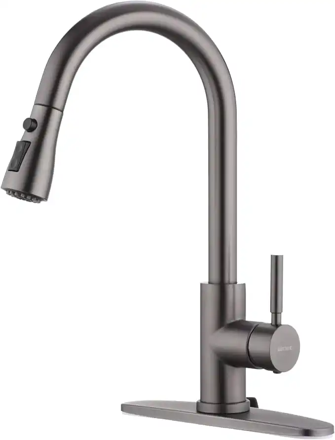 WEWE Black Stainless Kitchen Faucet with Pull Down Sprayer, Single Handle Commercial Modern RV Laundry Stainless Steel Sink Faucet