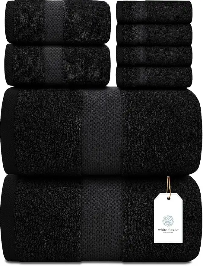 White Classic Luxury 8 Piece Bath Towel Set - 700 GSM Thick Combed Cotton Hotel Quality Towels - 2 Bath Towels, 2 Hand Towels, 4 Washcloths (Black, 8) — Price History & Tracker | DeserTracker