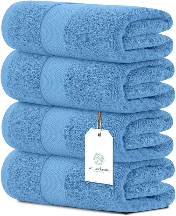 White Classic Luxury Cotton Bath Towels Large - | Highly Absorbent Hotel spa Collection Bathroom Towel | 27 inch X 54 inch | Set of 4 (Light Blue, 4)