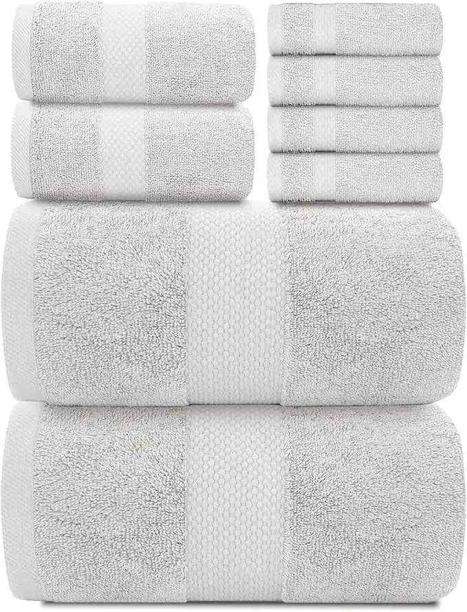 White Classic Luxury Silver Bath Towel Set - Combed Cotton Hotel Quality Absorbent 8 Piece Towels | 2 Bath Towels | 2 Hand Towels | 4 Washcloths [Worth $72.95] 8 Pack | Silver