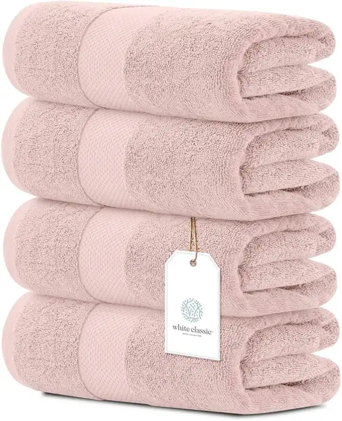 amazon.aeWhite Classic Luxury White Bath Towels Large - 100% Soft Cotton 700 GSM | Absorbent Hotel Bathroom Towel | 27 inch X 54 inch | Set of 4 | Pink