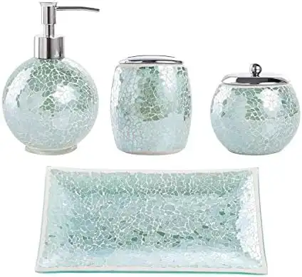 amazon.aeWHOLE HOUSEWARES | Bathroom Accessory Set | 4-Piece Decorative Glass Bathroom Accessories Set | Soap Dispenser, Tray, Jar, Toothbrush Holder | Gift Idea | Elegant Turquoise Mosaic Glass (Turquoise)