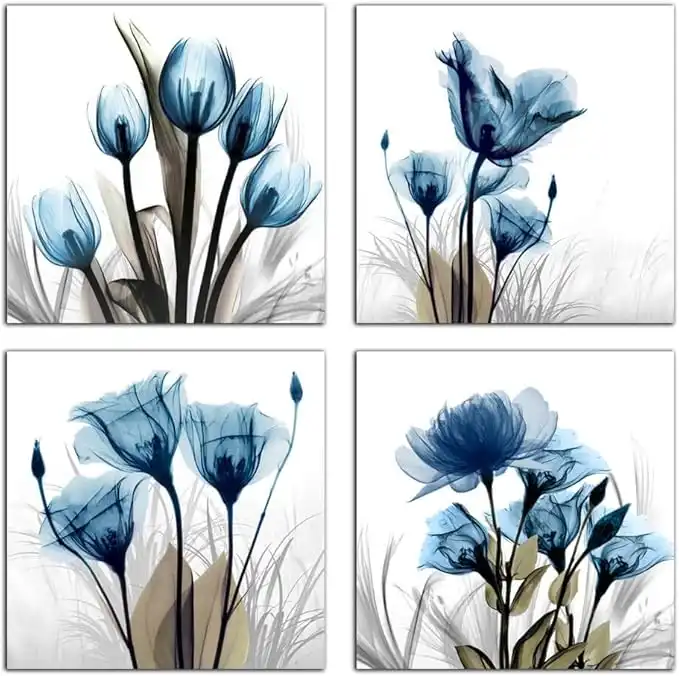 Wijotavic Flower Canvas Prints Wall Art Decor 4 Panels Blue Elegant Tulip Artwork Simple Life Picture for Living Room Bedroom Home Salon SPA Wall Decoration 12 x 12 4 Pieces — Price History & Tracker | DeserTracker
