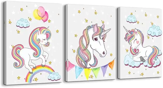amazon.aeWijotavic Unicorn Wall Decor for Girls Bedroom Canvas Art of White Pink Balloon Rainbow Cute Picture Artwork Modern Framed Prints Painting Kids Nursery Decorations 3 Pieces a Set
