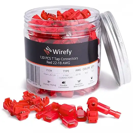 Wirefy 120 PCS Red T Tap Wire Connectors - Quick Splice Electrical Wire Tap Connectors and Insulated Male Quick Disconnect Terminals - 22-18 AWG — Price History & Tracker | DeserTracker