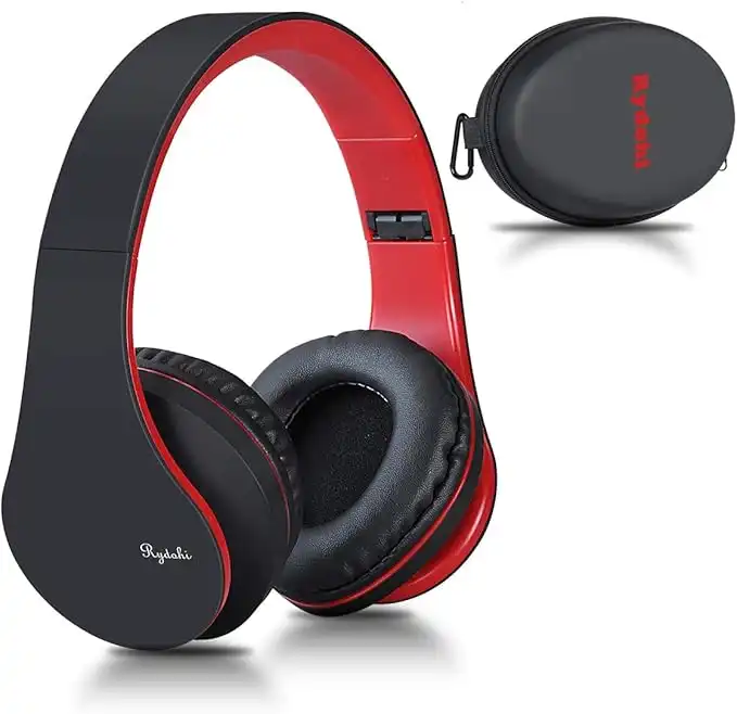 amazon.aeWireless Bluetooth Headphones Over Ear, Hi-Fi Stereo Headset with Deep Bass, Foldable and Lightweight, Wired and Wireless Modes Built in Mic for Cell Phones, TV, PC and Traveling£Black-Red
