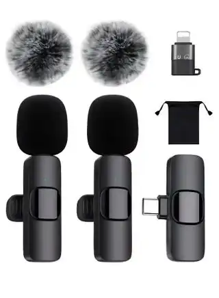 noon.comWireless Lavalier Microphone For Type-C Phones - Plug And Play Wireless Microphone With 2 Microphones For Usb-C Android Phones And Iphones Video Recording - Interviews - Vlog - Auto Sync And Noise Reduction - 2.4 Ghz - Black