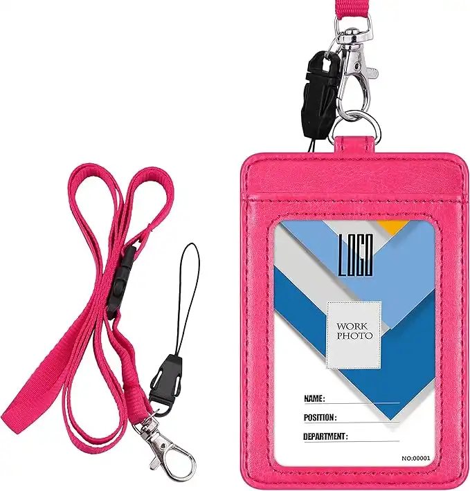 amazon.aewisdompro Badge Holder, 2-Sided PU Leather ID Badge Card Holder Wallet Case with 1 Clear ID Window and 1 Credit Card Slot and 22 Inch Quick Rlease Detachable Neck Lanyard Strap - Hot Pink (Vertical)