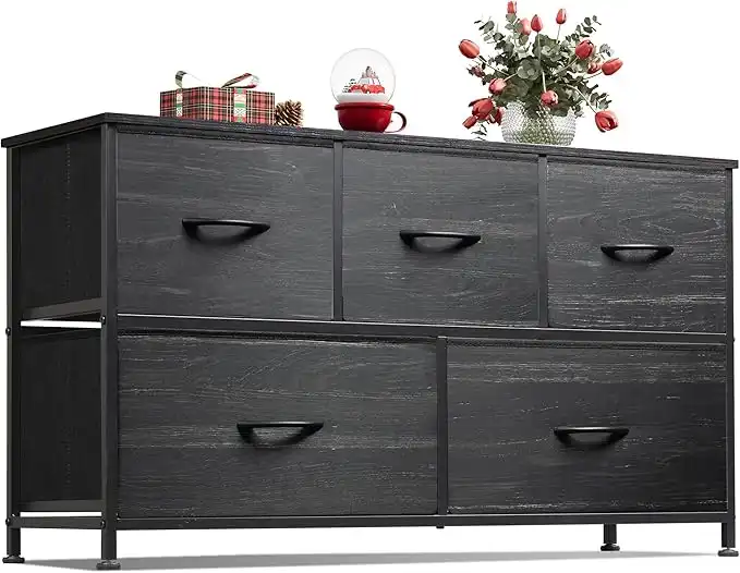 WLIVE Dresser with 5 Drawers, Dressers for Bedroom, Fabric Storage Tower, Hallway, Entryway, Closets, Sturdy Steel Frame, Wood Top, Easy Pull Handle, Grey Oak — Price History & Tracker | DeserTracker