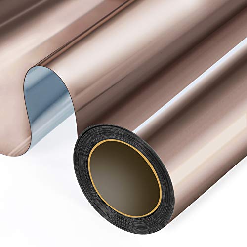 WochiTV One Way Window Film, Window Tint for Home, Heat Control UV Sun Blocking Glass Mirror Tint Non Adhesive Static Cling Reflective Window Privacy Film (Brown Silver)