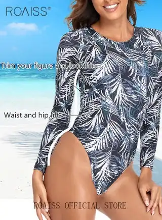 noon.comWomen Backless One Piece Swimsuit, Retro Long Sleeve Beachwear with Chest Pads and Exquisite Patterns, Sun Protection Surfing Wetsuit for Women, Suitable for All Body Types, Great Choice for Swimming, Sunbathing, Hot Baths and Beach Walks