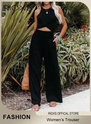 noon.comWomen Casual Pants, Wide Leg Cotton Linen Trouser, Comfy Elastic High Waist Pant With Side Pockets, Long Lounge Pants, Comfy Beach Pants For Women, Ladies Flowy Trouser For Work/ Shopping/ Holiday/ Everyday Wear