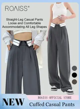 noon.comWomen Drapey Suit Pants Casual Wide Leg Trousers with Loose Fit Flared Hem Design for a Slimming Look Straight Leg Pants Flatter All Body Types Suitable for Work and School