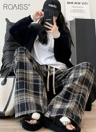 noon.comWomen Loose Fit Wide Leg Pants Women Casual Straight Leg Trousers Skin Friendly Fabric Checkered Pattern Soft Comfortable Flattering for All Body Types Suitable for both Home and Outdoor Wear